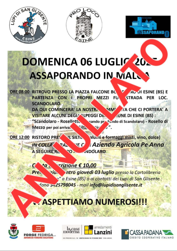 Purtroppo visto il meteo si è deciso di annullare Assoparando in Malga previsto per il 6 luglio.