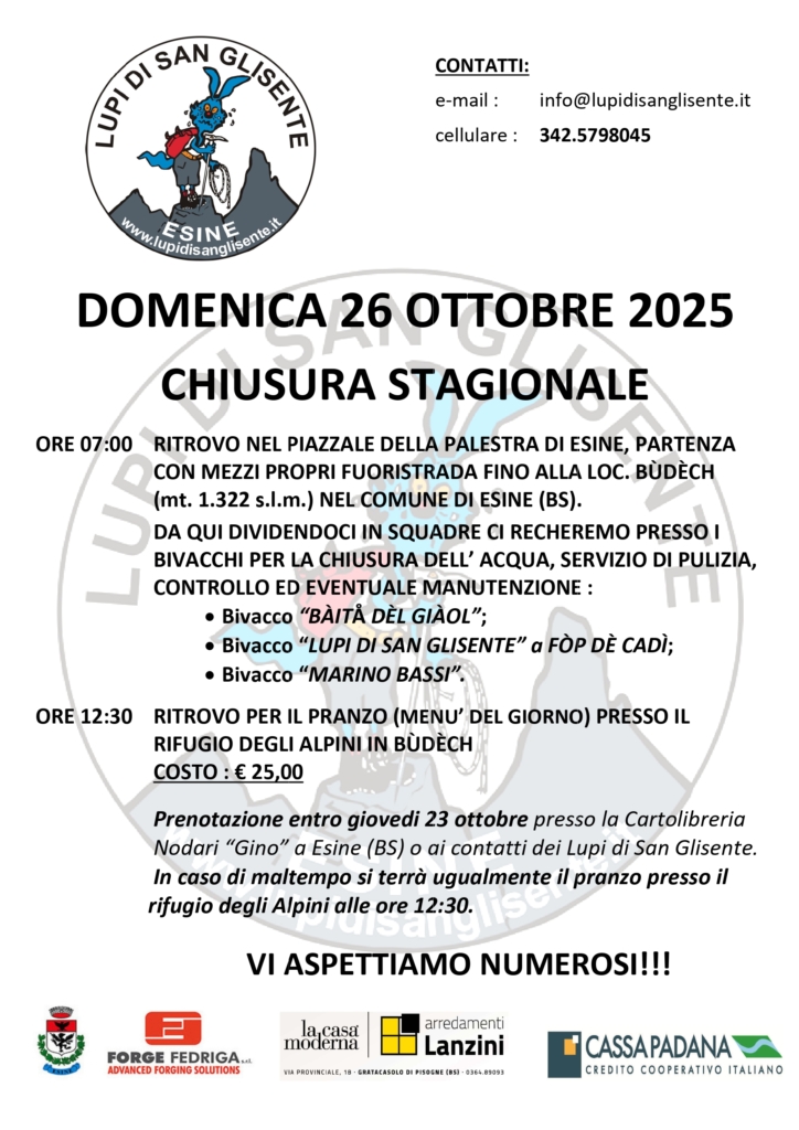 Siamo in attesa che ERSAF Ente Regionale per i Servizi all’Agricoltura e alle Foreste, proprietaria dei bivacchi, a seguito di problematiche legate a nuove norme in fatto di responsabilità assicurative ci comunichi le sue decisioni per un eventuale rinnovo dei contratti.